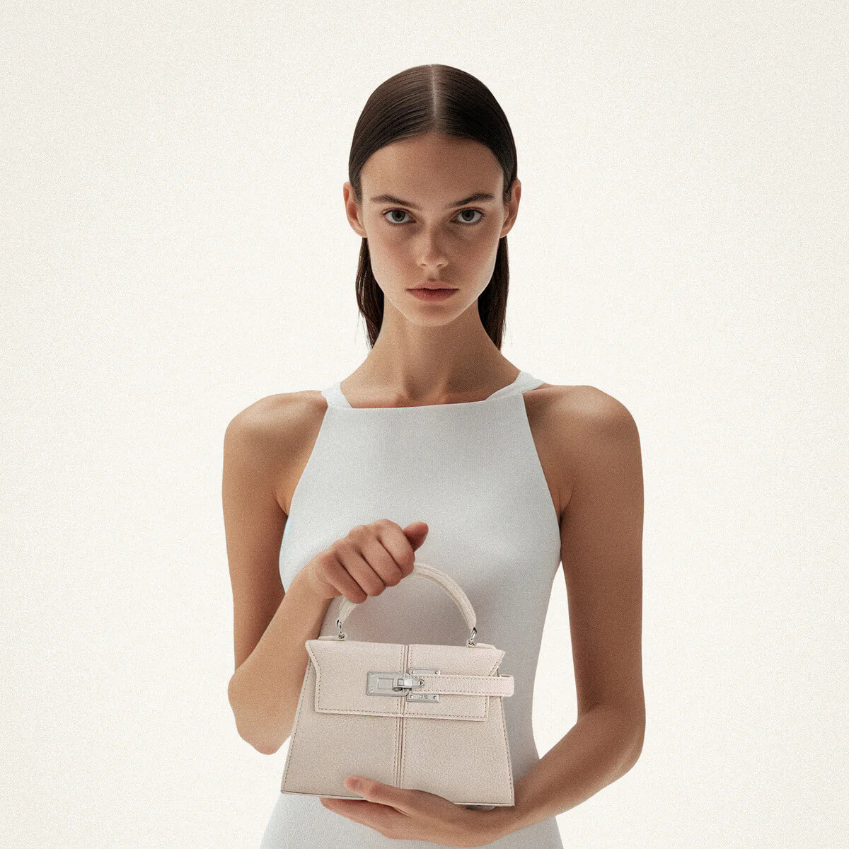 Trapezoidal bag with lychee pattern single shoulder crossbody bag, niche design, hand-held women's bag, commuting outfit, Kelly bag