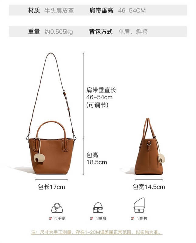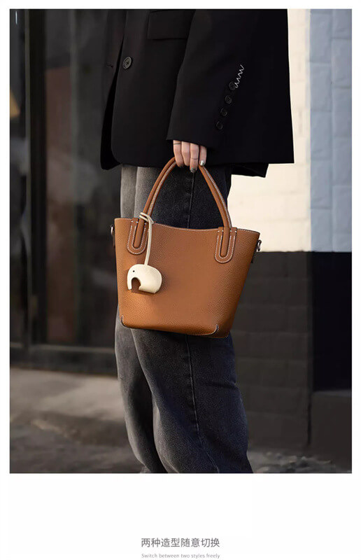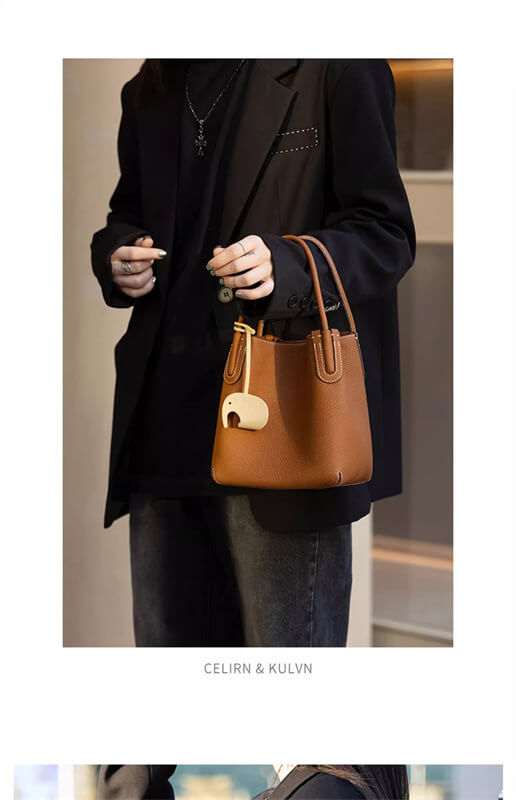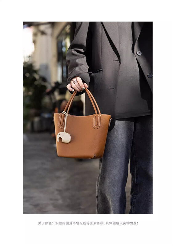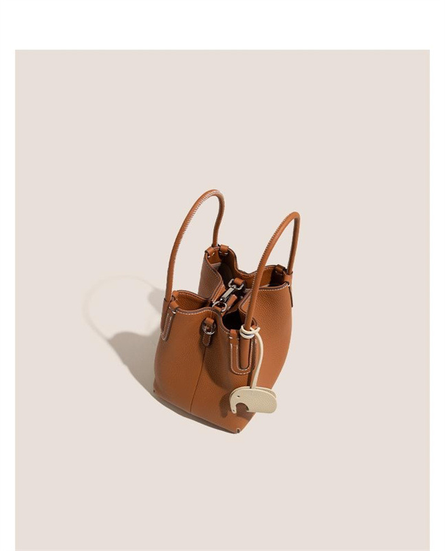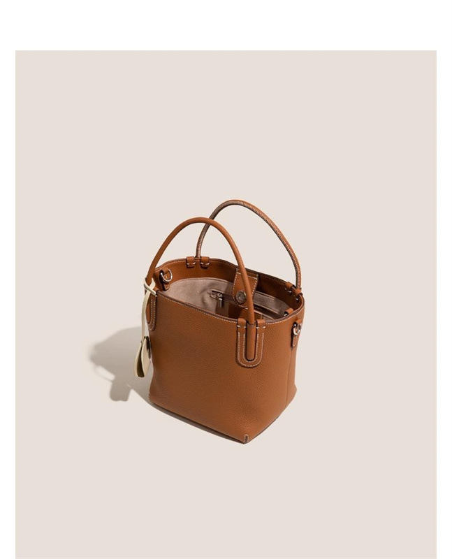 Women's handbag, vegetable basket bag, new single shoulder crossbody bag, high-end sensory communication bag, hand-held top layer cowhide women's bucket bag