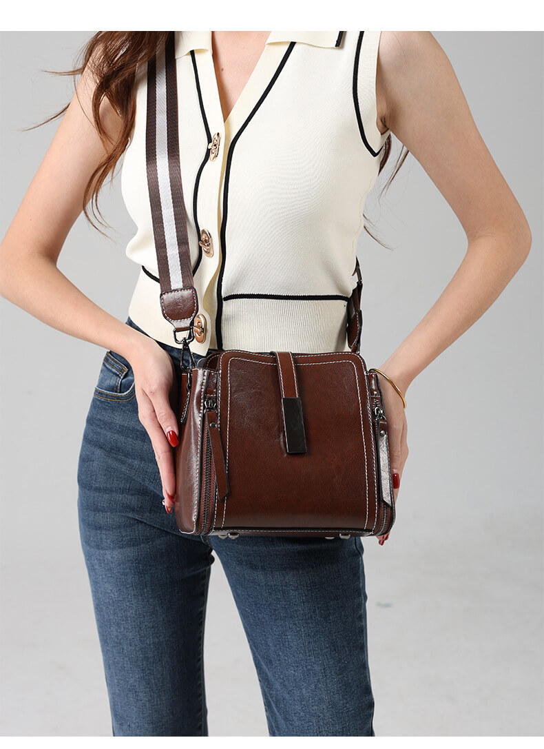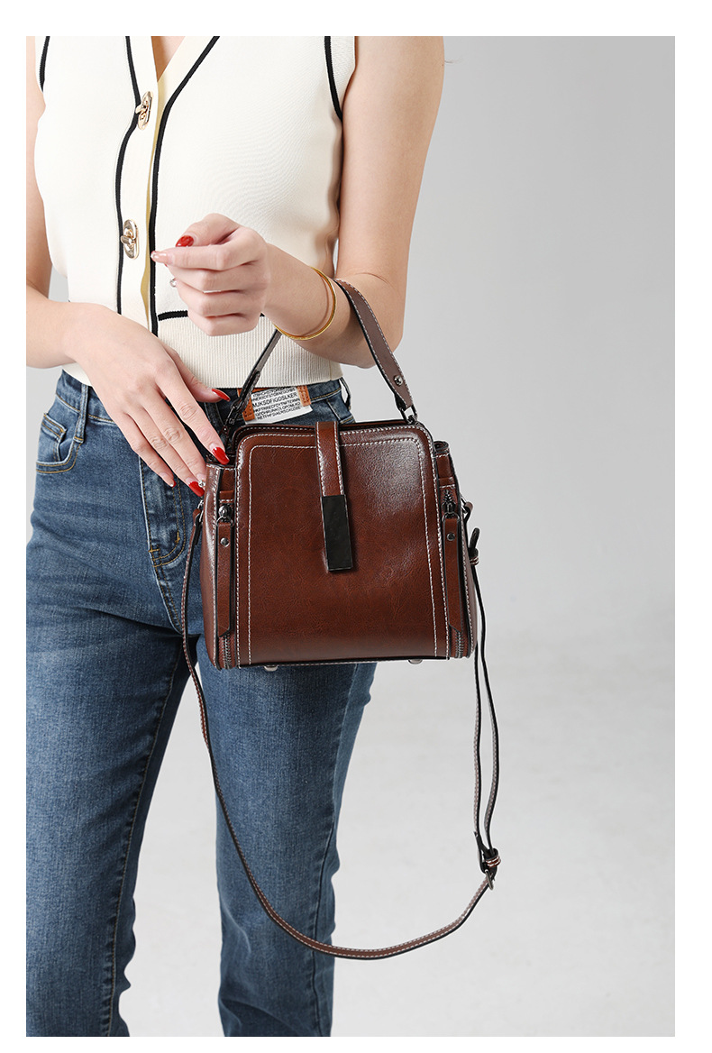 Fashion leather women's handbag crossbody bag women's 2025 new retro versatile shoulder bag high-end commuting handbag