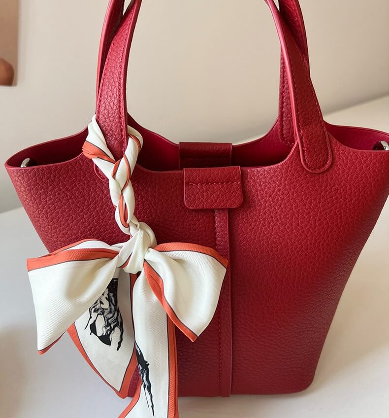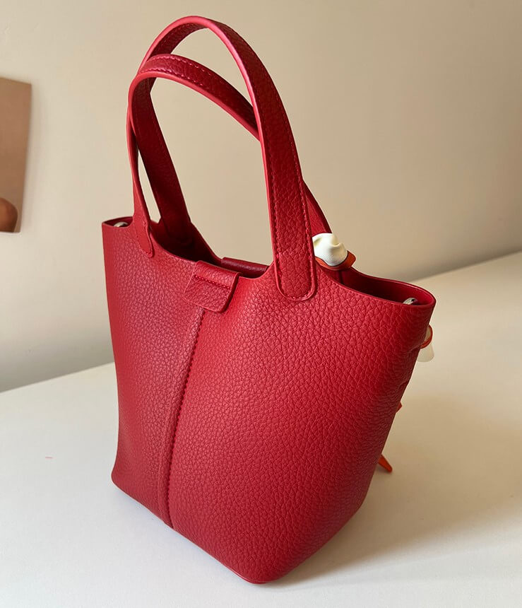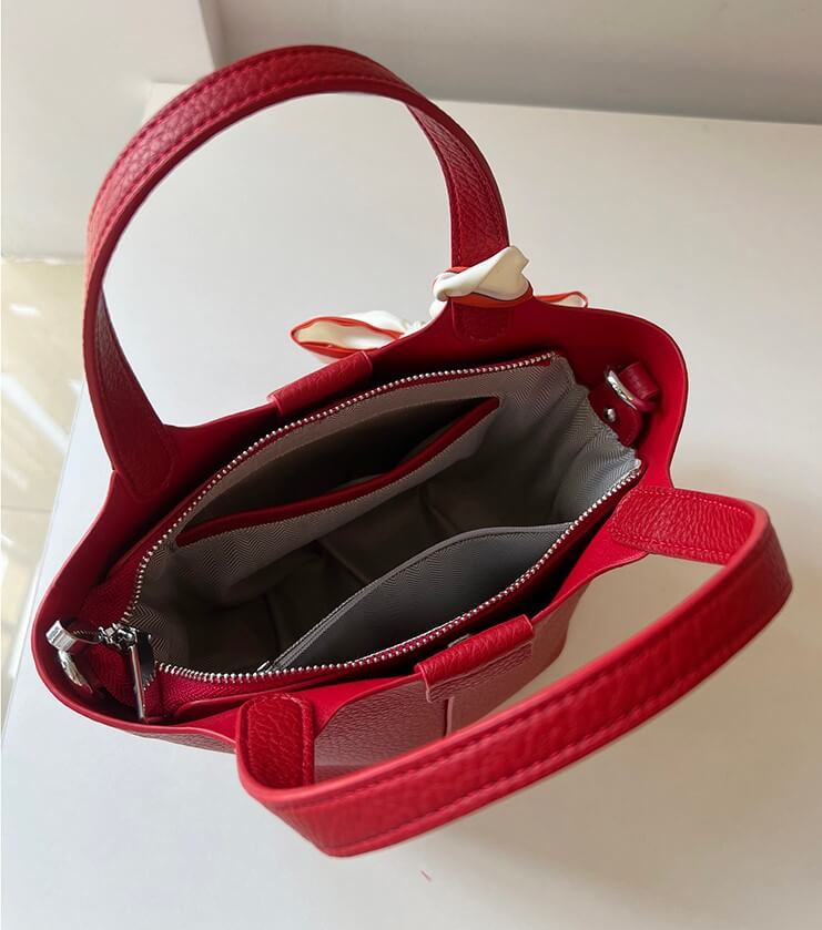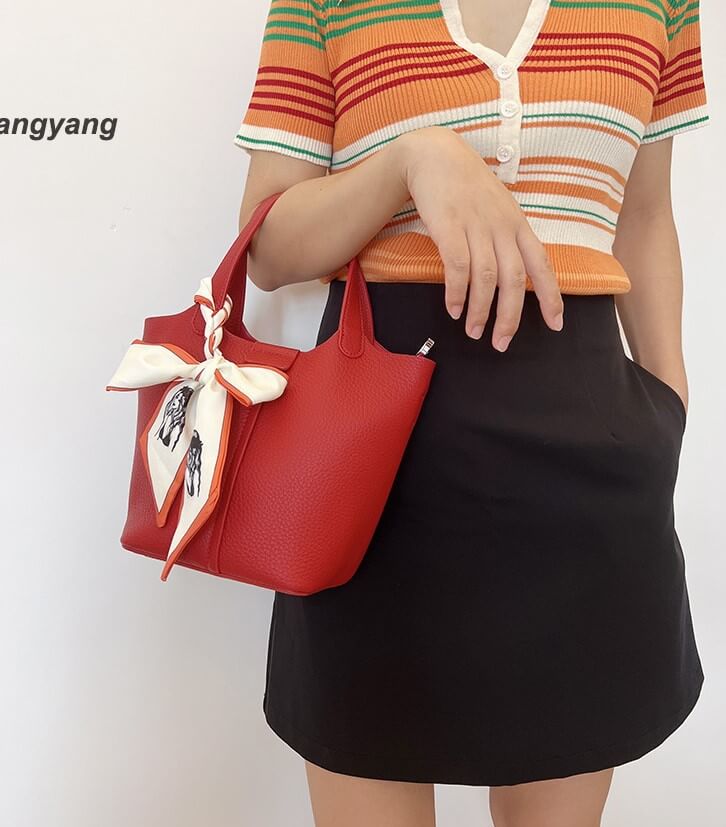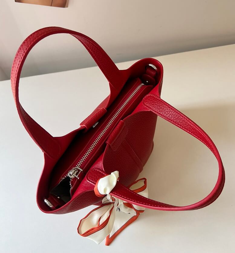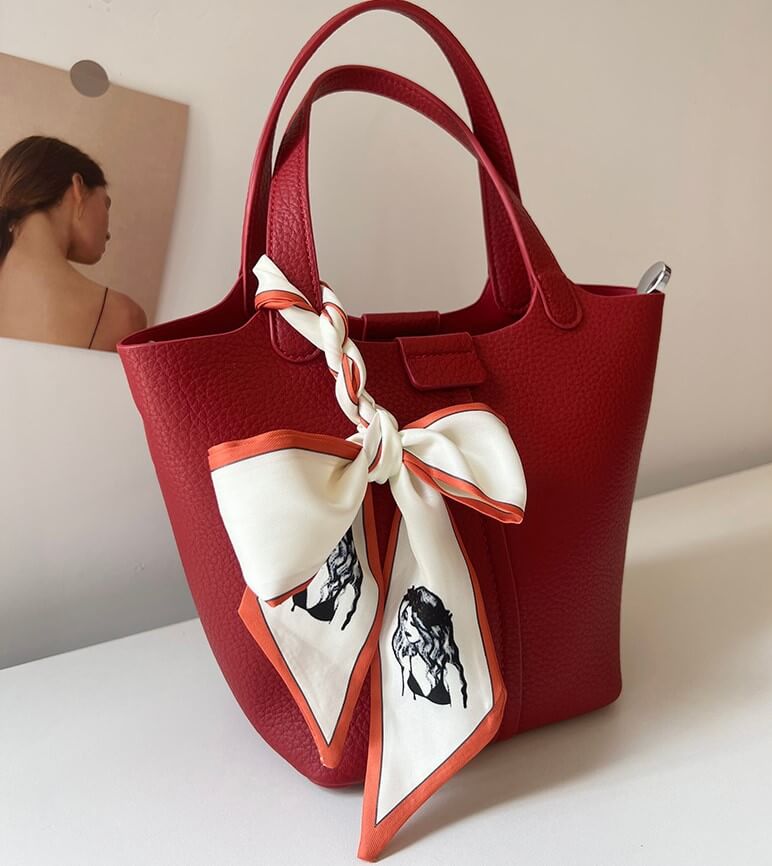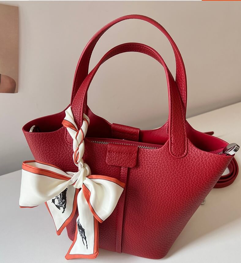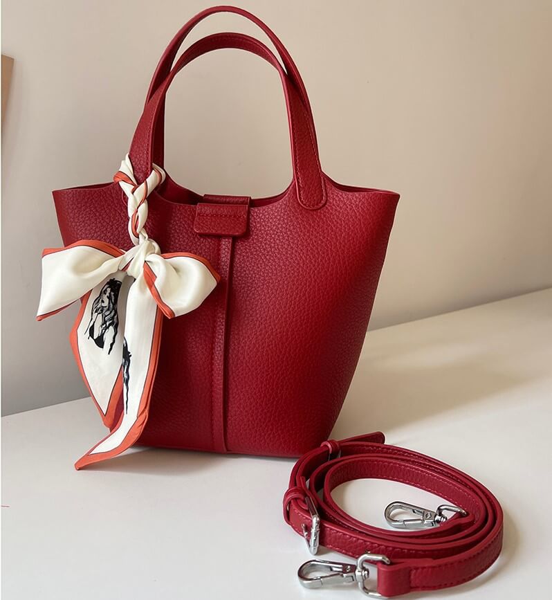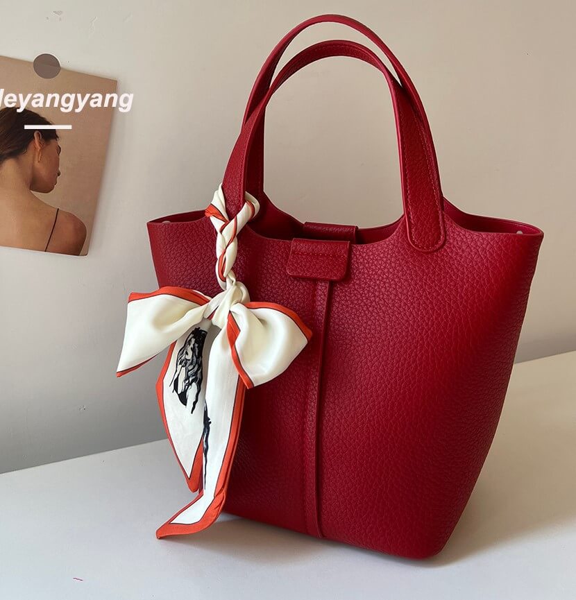 Women's red temperament wedding bag bridal bag 2025 new large capacity high-end niche basket bucket bag